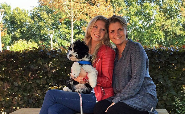 Miss Nederland Jessie Jazz Vuijk (links) en Monica van Ee (rechts) met Jessie, hulphond in opleiding.