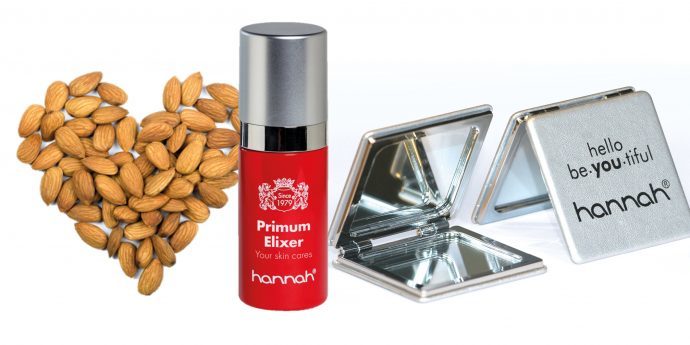 Amandelen zijn één van de gezondste noten, want zij zijn rijk aan mineralen en vitamines die goed zijn voor o.a. je hersenen, hart en spijsvertering. Maar wist je dat de amandel ook goed voor je huid is? Met name de bittere amandel, want daaruit kan een extract gewonnen worden wat valt onder AHA’s (Alfa Hydroxy Acids). Zo is het Primum Elixer van hannah ontwikkeld op basis van amandelzuur.